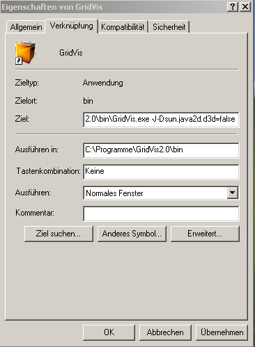 Die GridVis über die Startoption -J-Dsun.java2d.d3d=false starten: