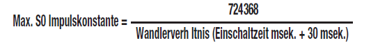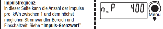 Die Impulsfrequenz einstellen (Imp/kWh). Dazu muss zunächst die höchste Impulsfrequenz berechnet werden: