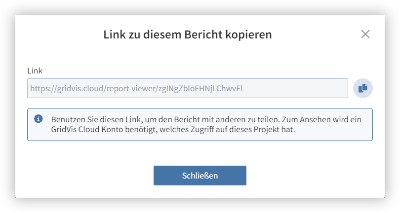 Bitte beachten Sie, dass zum Betrachten der geteilten Berichte ein Benutzerkonto in GridVis Cloud erforderlich ist, das Zugriff auf dieses Projekt hat.