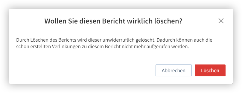 - Es öffnet sich ein Dialog. Bestätigen Sie das Löschen der Berichte im Dialog mit der Schaltfläche Löschen.