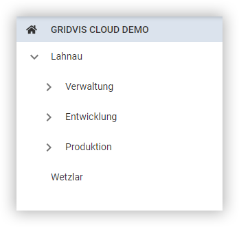 Die GridVis Cloud nutzt zur Navigation eine hierarchische Struktur. Diese Struktur dient dazu, als zentrales Navigationselement zwischen Ihren Verbräuchen, Kosten und CO₂-Emissionen zu wechseln, sodass Sie diese Werte den Messstellen leicht zuordnen können.
