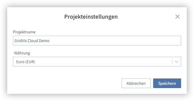 Beachten Sie, dass beim Ändern der Währung keine Umrechnung stattfindet. Die Änderung der Währung ändert nur die Darstellung in der GridVis Cloud.