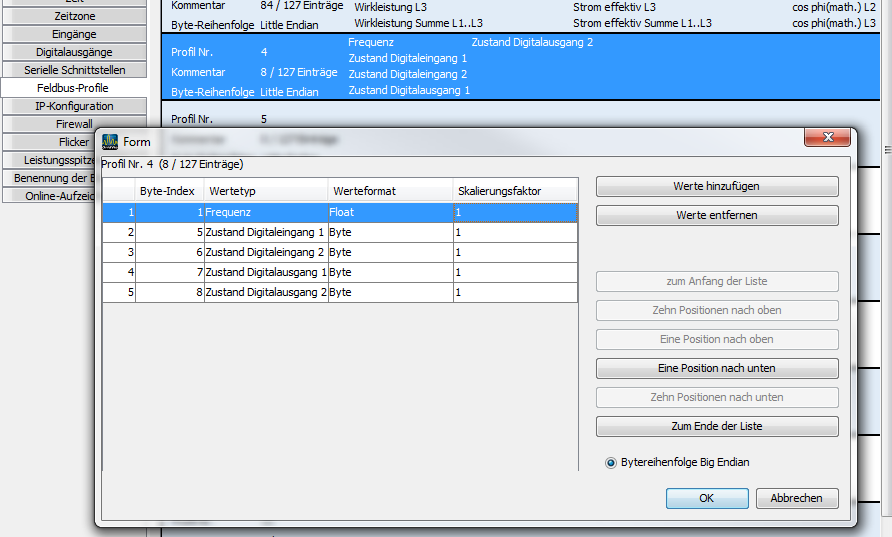 Mit der GridVis das kundenspezifische Profil Nr. 4 anlegen und im Gerät speichern.