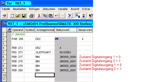 Den Messwert Frequenz und den Status der digitalen Ein- und Ausgänge über Profibus abrufen.