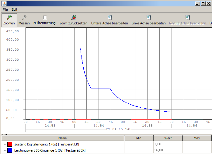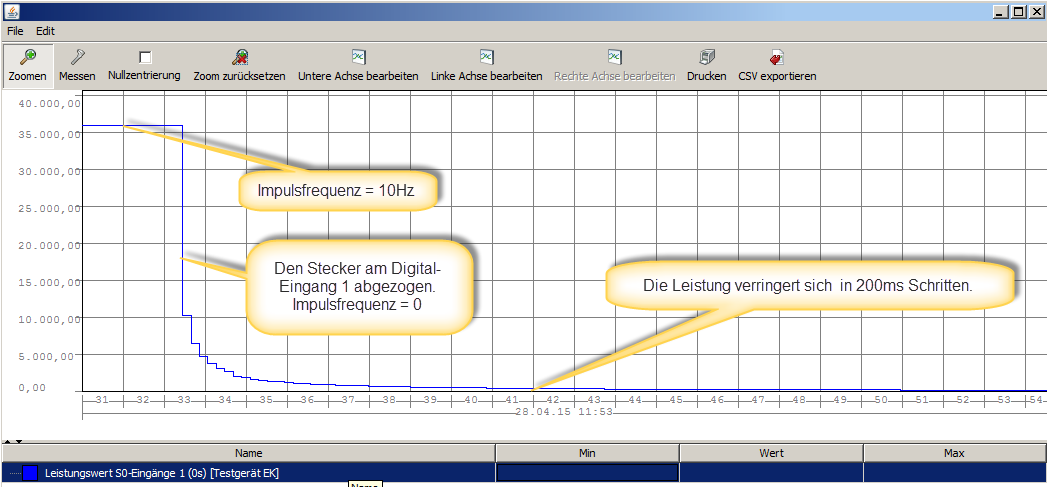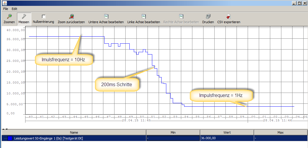 | 10 Hz | 0,1 Sekunde | 36000 | Die berechnete Leistung von 36000 wird konstant angezeigt. | |