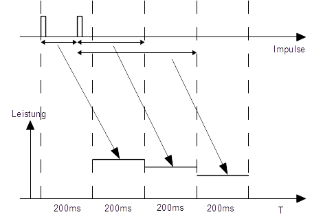 Die Leistung wird aus dem Abstand zwischen zwei Impulsen berechnet.