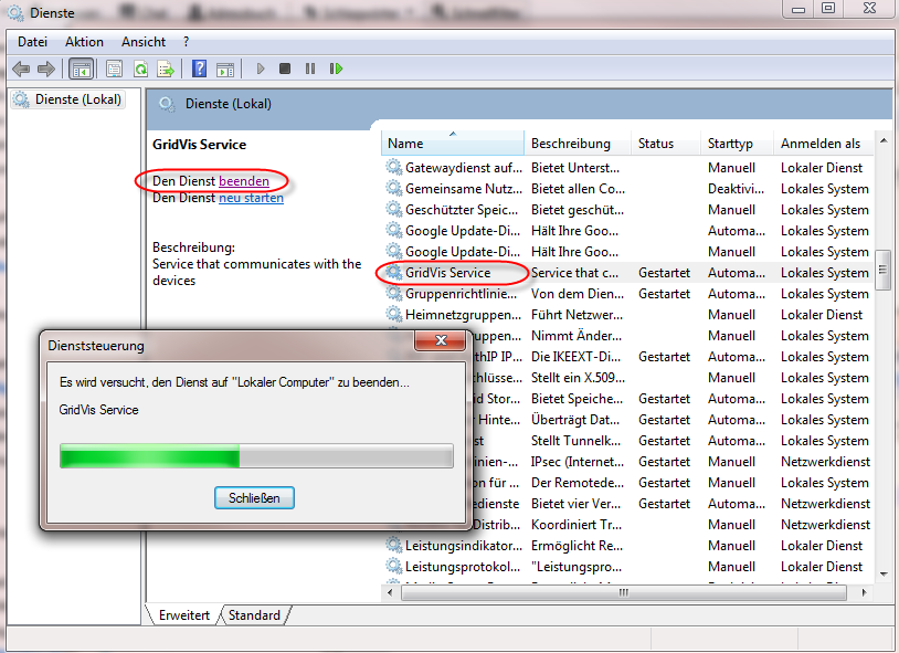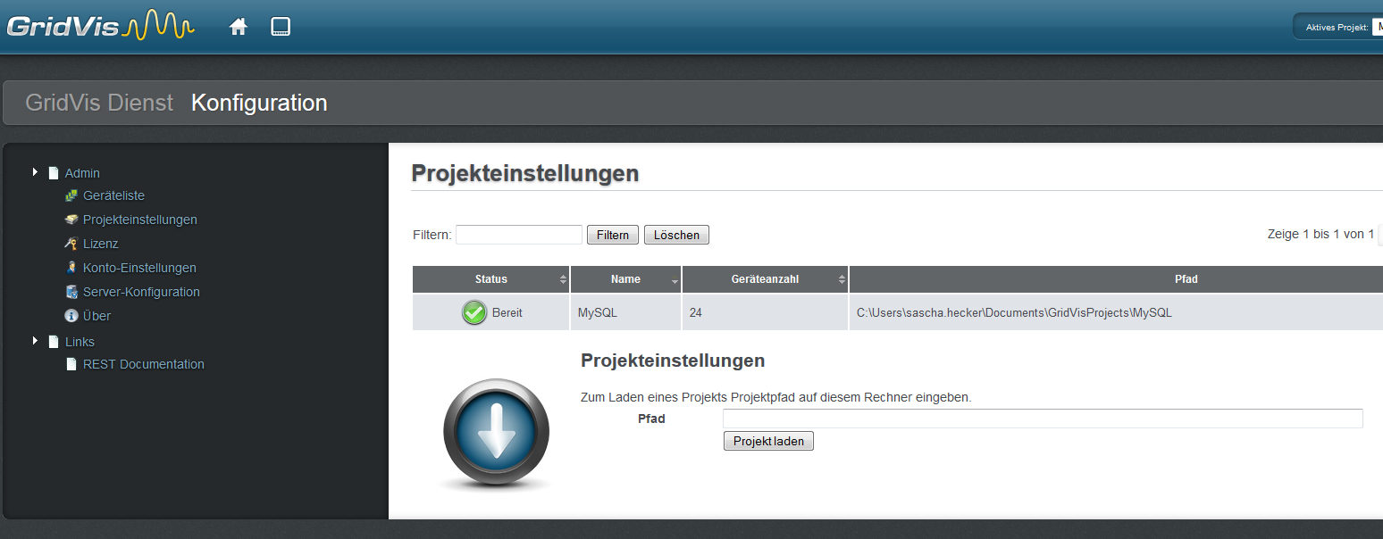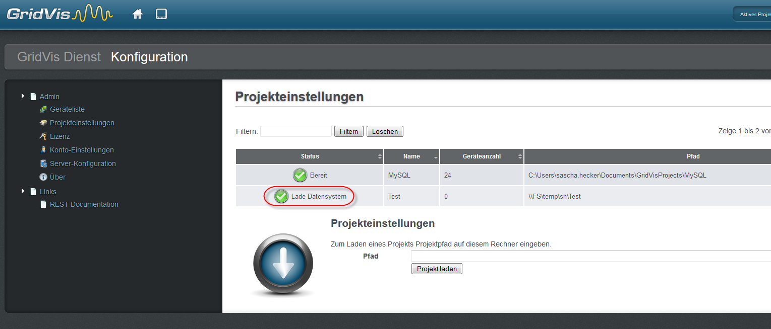 Man kann fehlerhafte Projekte manuell aus dem GridVis Dienst löschen. Dazu muss man folgende Schritte durchführen: